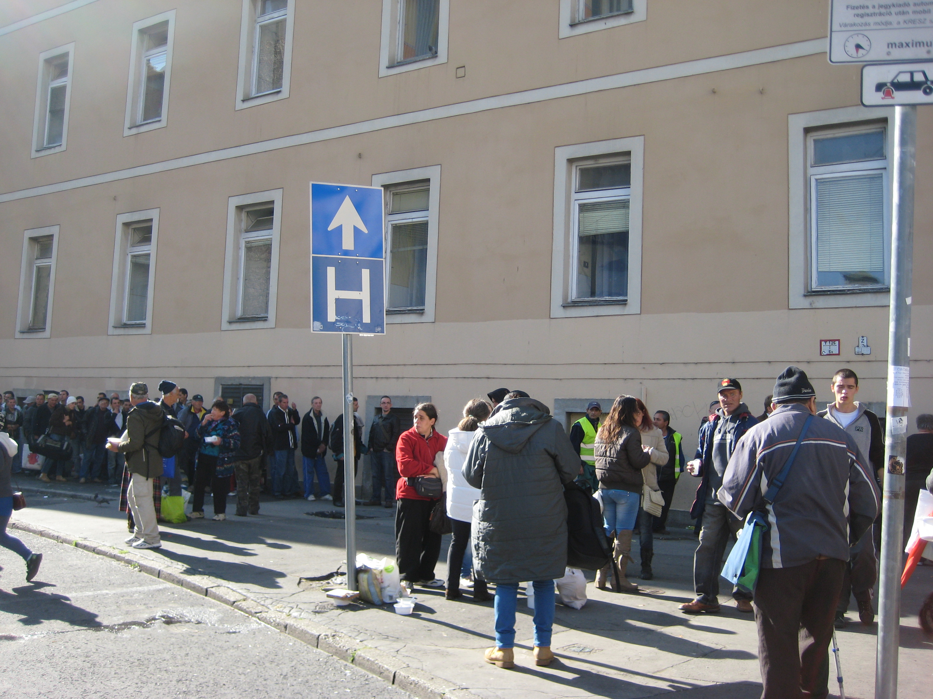 A sor még az átlagosnál is hosszabb volt. Naponta 400-600 fő között érkeznek a Blaha Lujza térre.