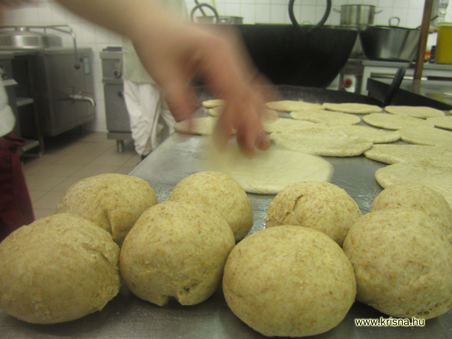 A réteslisztet és a joghurtot elkeverjük egy kis kerámia tálban, lefedjük, és meleg helyen 8-10 órán át állni hagyjuk, amíg kicsit megkel. Ekkor belekeverjük a lisztbe, hozzáadjuk a sót, a cukrot, a sütőport, a ghít vagy olajat, és annyi vizet, hogy egy közepes keménységű tésztát kapjunk. Lefedve 1/2-3 órát pihentetjük, majd még egyszer átgyúrjuk. 14 gombócot készítünk belőle, és lefedjük őket egy nyirkos konyharuhával. Közben a ghít felmelegítjük. A golyócskákból kb. 10 cm átmérőjű, a purinál kissé vastagabb lepényeket nyújtunk. Egyenként a forró ghíbe csúsztatjuk. Pár másodperc múlva a felszínre fog emelkedni. Azonnal gyengéden a felszín alá nyomkodjuk, míg luftballonként fel nem fúvódik. Mindkét oldalát aranysárgára sütjük. Vigyázzunk, hogy ne barnuljon meg! A felesleges ghít lecsöpögtetjük, és forrón tálaljuk.