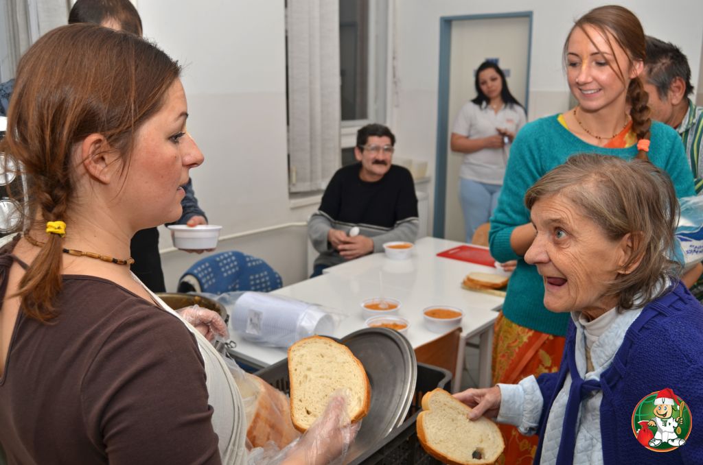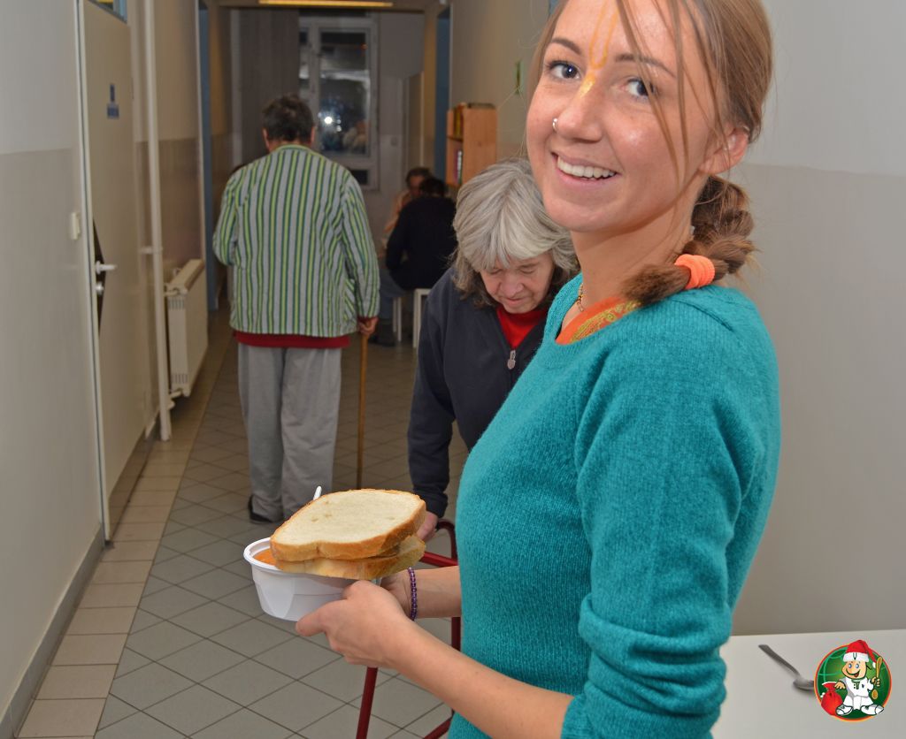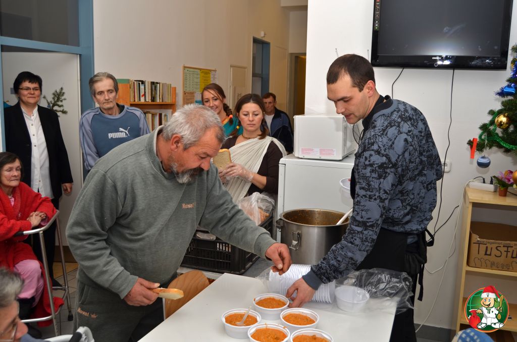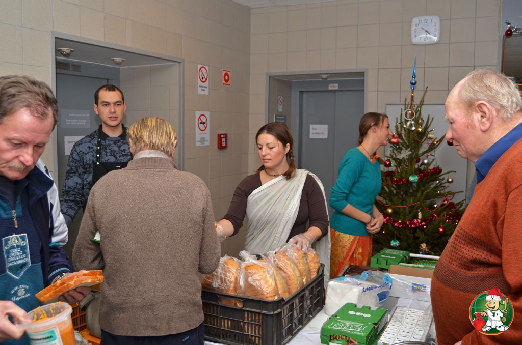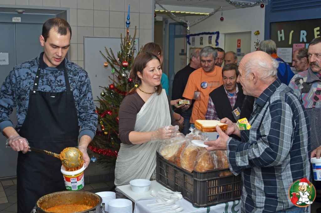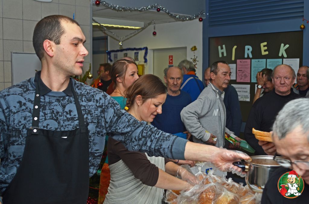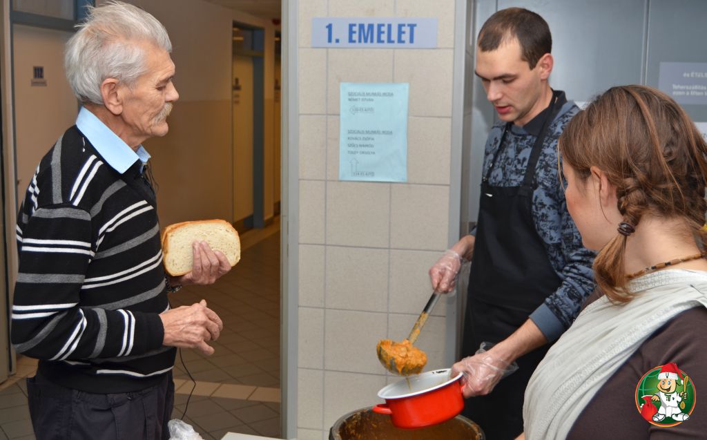 Ételosztás a Szabolcs utcai hajléktalangondozóban