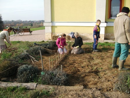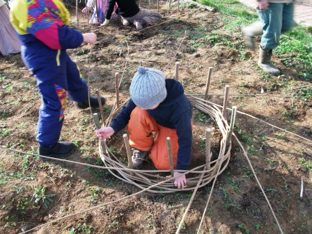 A Kosárfonás órán szerzett tapasztalatain megszerzése után következett a kerti sövényfonás. Kosárfonás itt >>