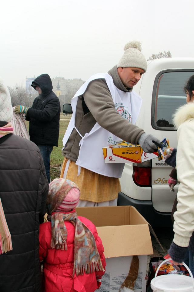 Karácsony… a segítő emberi szívek lázban égve várják, hogy embertársaik életébe egy kis örömöt csempésszenek. A Krisna-hívők humanitárius programjának munkatársai idén 7. alkalommal rendezik meg nagyszabású karácsonyi osztásukat a Flórián téren, melynek keretein belül melegétel és 25 különféle tartós élelmiszer, zöldség és friss gyümölcsök kerülnek kiosztásra a helyi családsegítő által delegált 800 kerületi ellátott s családja számára.