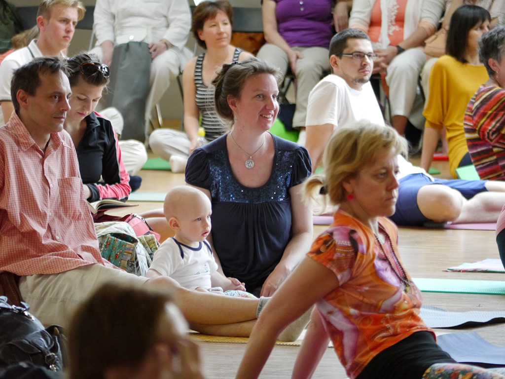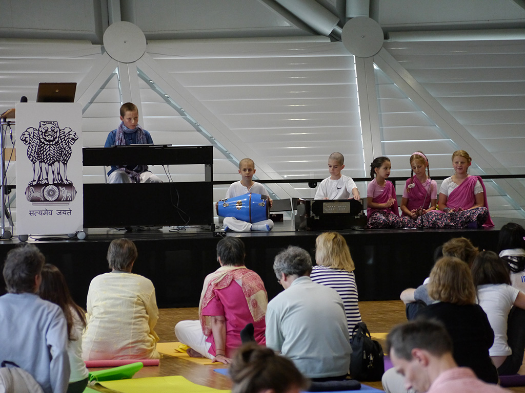 A protokolláris beszédek után izgalmas események következtek: a jóga szellemi, lelki, testi hatásairól számos érdekes előadás hangzott el, és sor került gyakorlati bemutatókra is a hallgatóság aktív részvételével. A színpadi műsor kiemelkedő programja volt a Krisna-hívők budapesti magántanulói által, gazdag hangszeres kísérettel előadott bhajan produkció. A fellépő 5 és 13 éves kor közötti gyerekcsapat nagy sikert aratott. A felvétel itt tekinthető meg.