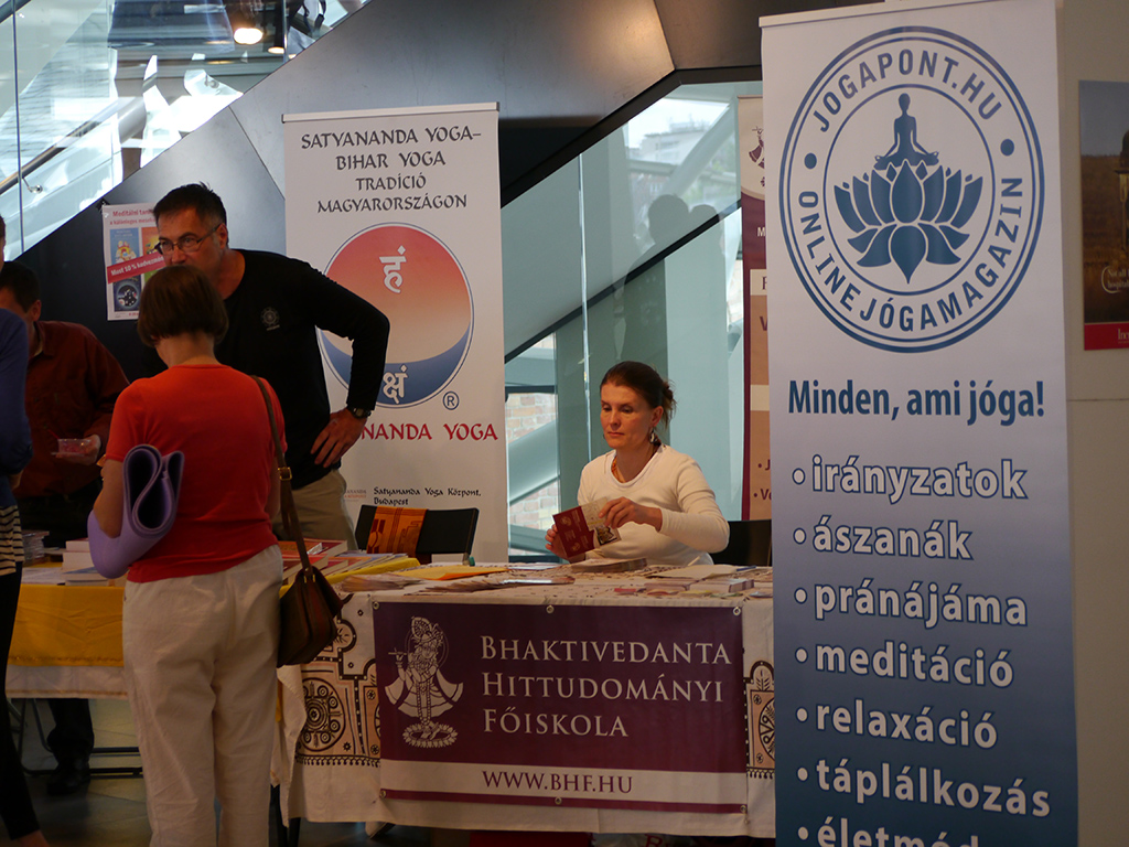 Az eseményen egyházunk teológiai és jógaoktató felsőoktatási intézménye, a Bhaktivedanta Hittudományi Főiskola is képviseltette magát. A különféle jógairányzatok és iskolák standjai között főiskolánk munkatársai felvételi információkról, képzésekről, tanfolyamokról és a szakok specialitásairól adtak tájékoztatást az érdeklődőknek, emellett bemutatták a “Jógázzuk körbe Magyarországot” eseménysorozatról készült fotókiállítást. Képes Andrea, főiskolai jógaoktató stresszoldó jógaórájával emelte a színpadi program színvonalát.