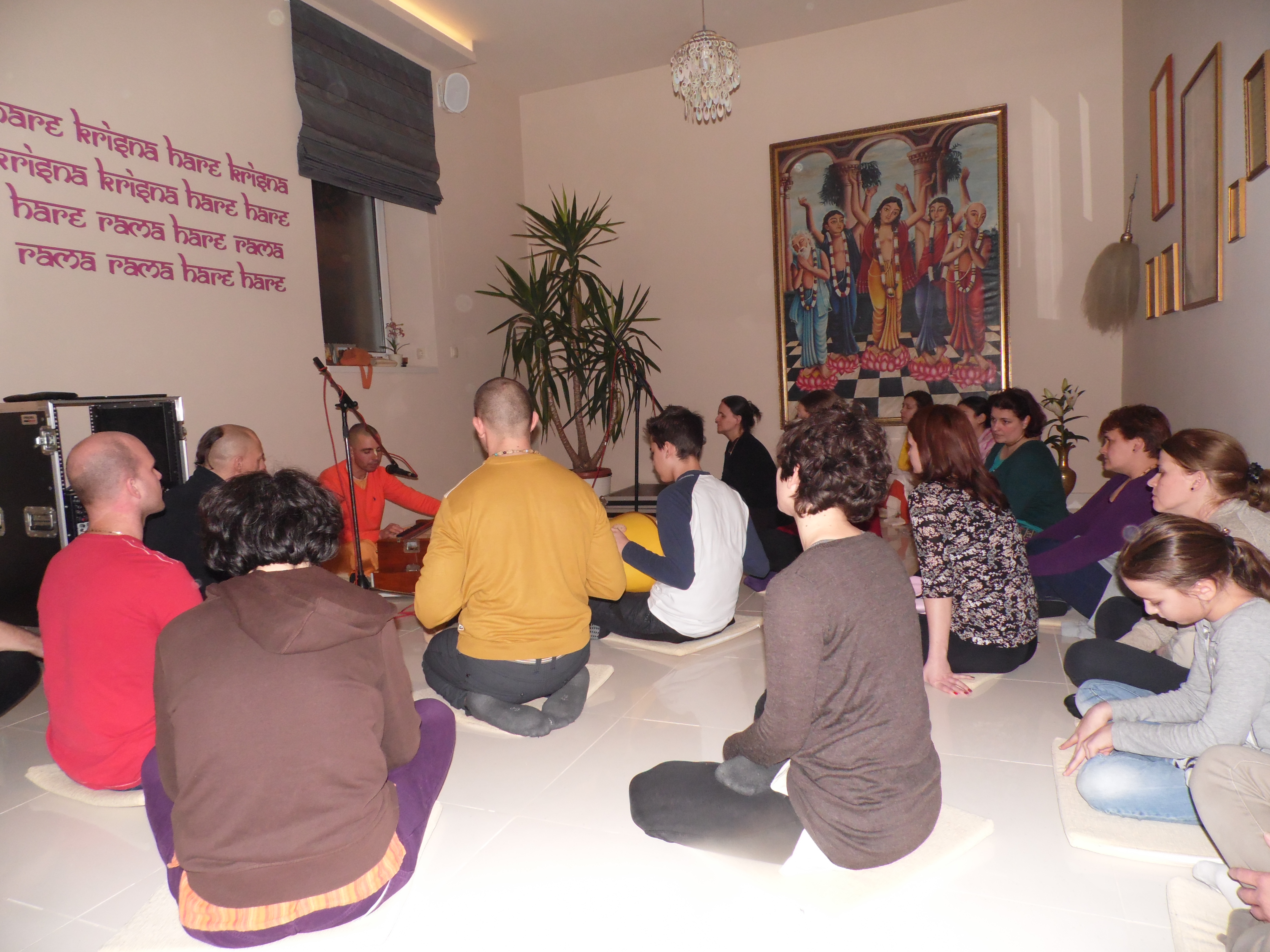 – Hétfőtől péntekig, reggel 7 és 8 óra között a Srímad-Bhágavatam című könyvet olvassuk, és ennek útmutatásai alapján arról beszélgetünk, hogyan válhatunk mindennapi életünkben békés természetűvé, türelmessé és elégedetté.