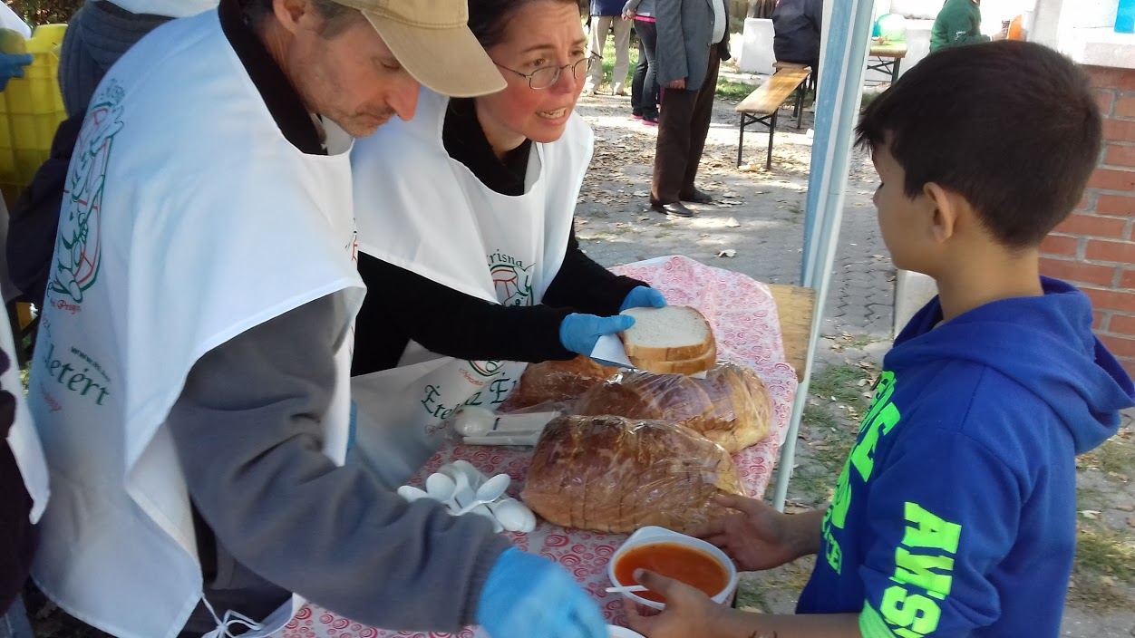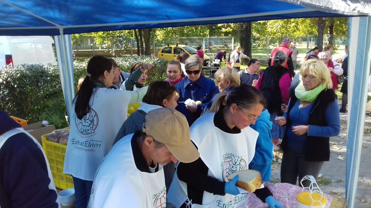 Szolnokon idén már másodszor tartott ételosztást az Ételt az Életért, “Mint egy falat kenyér” elnevezésű vidéki segélyakciója keretében. Ezúttal az Újvárosi Fejlesztési Iroda által szervezett családi napon vehettek részt, ahol többszörösen hátrányos helyzetű és mélyszegénységben élő családok is részt vettek. 150 adag meleg ebéddel, gyümölccsel, üdítővel, édes keksszel és a gyerekeknek órarenddel kedveskedtek az alapítvány önkéntesei. További 50 adag ebéddel pedig a helyi hajléktalan szálló ellátottjait látták vendégül. Támogatásaitokat nagyon szívesen fogadják a vidéki programok bővítéséhez is, a 13600-as Adhat Vonalon át a 33-as kódot tárcsázva, hívásonként 250 Ft-al segíthettek! Köszönjük ![]()
