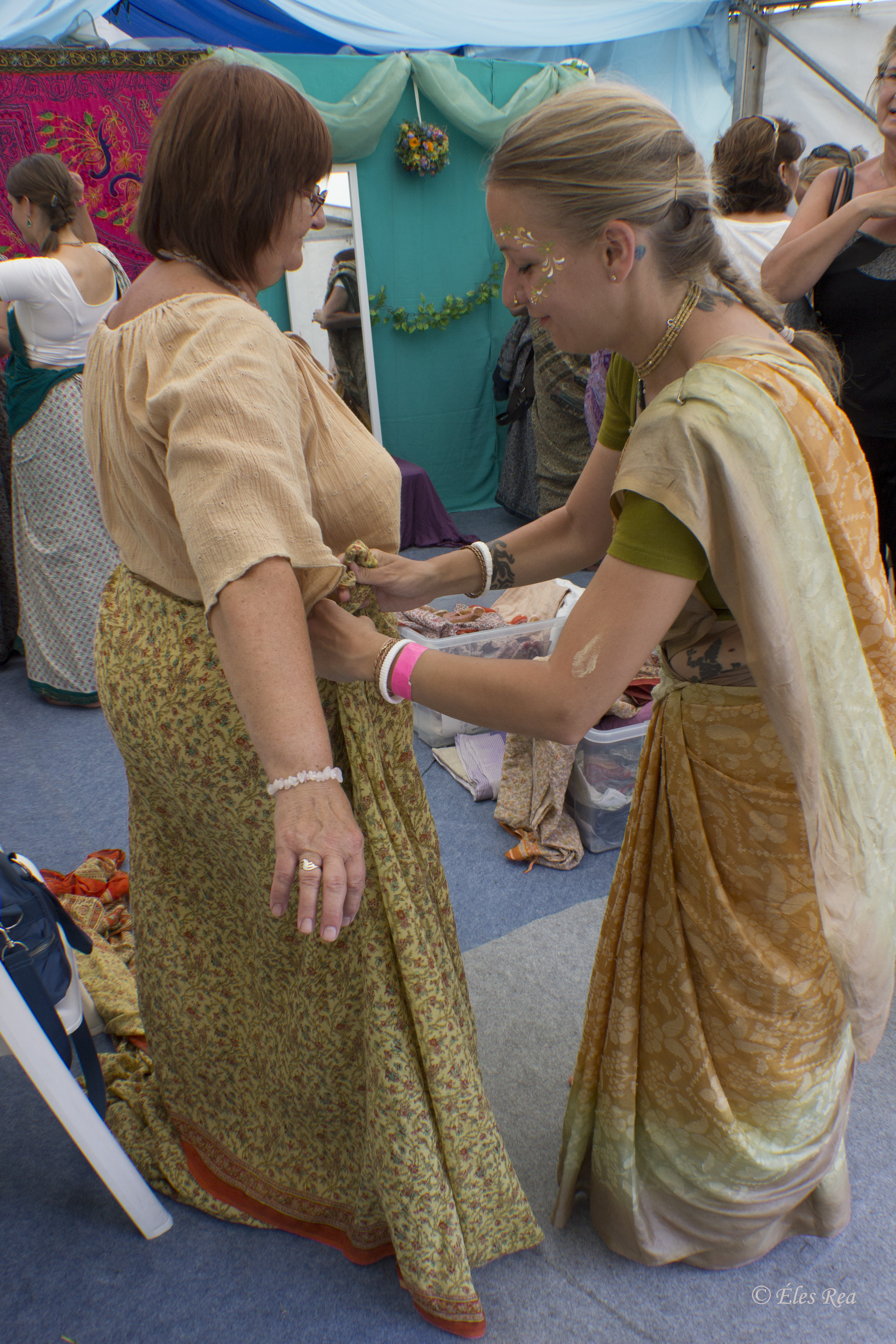 A tradicionális indiai viseletekkel is megismerkedhetnek vendégeink. A szári egy különleges, hosszú kelme, melynek testre igazítása elsőre bonyolultnak tűnik, s amely télen-nyáron egyaránt kellemes viselet. Nyugaton szívesen viselik hírességek is estélyi ruhaként határtalan eleganciája miatt. A gyönyörű selyem szárik mindig is vonzották a nőket, ezért lehetőséget adunk a felpróbálásukra. A nap egyik fénypontja az indiai viseletek divatbemutatója lesz. Az öltözködés elengedhetetlen részét képezik az izgalmas ékszerek és a virágfüzérek, melyet el is készíthetsz a helyszínen. És miután teljesen átvarázsoltunk, készíts egy fotót magadról, hogy megmutathasd vonzó külsődet a barátnőidnek.