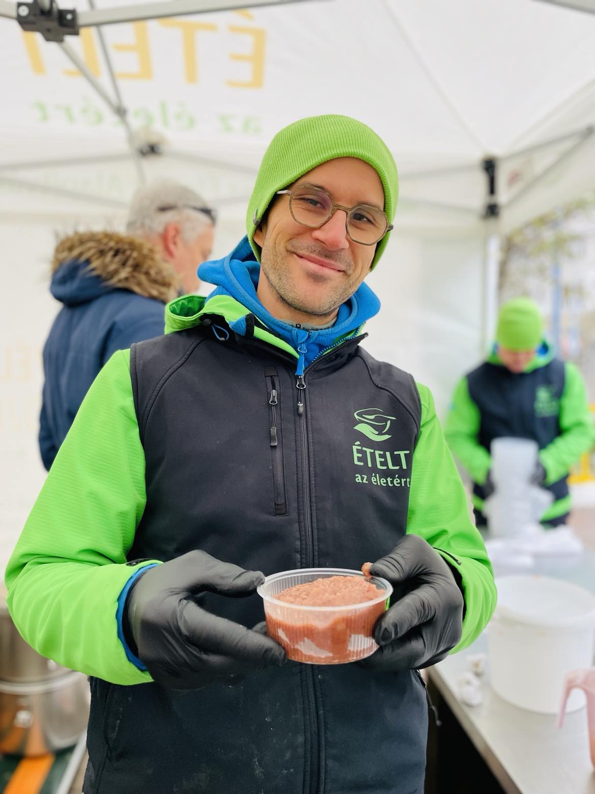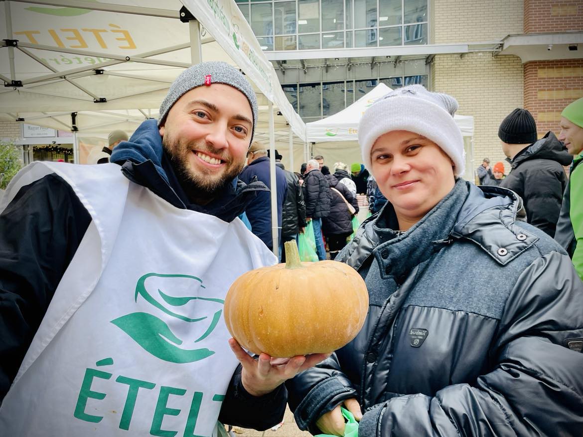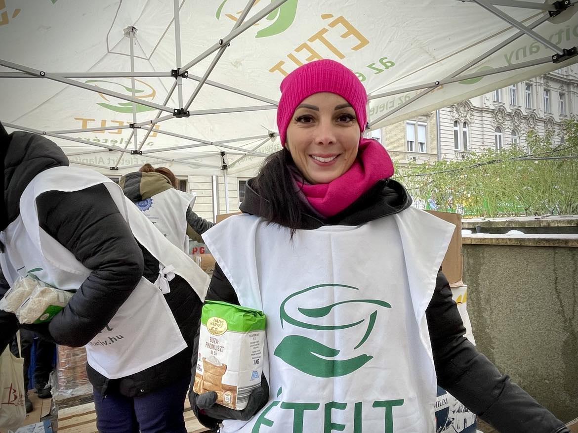 Az első nagy, kiemelt budapesti ételosztásunkat a hévégén tartottuk. Szombaton főként Erzsébetváros lakosságát vártuk ünnepi csomaggal, ahol velünk volt a kerület szociális alpolgármestere, Szücs Balázs is. A 7. kerület is egy olyan régió a fővárosban, ahol mindennapos ételosztással várjuk a rászorulókat, de az ünnepek közeledtével a gazdag, tartós élelmiszercsomag az, amire a családok áhítoznak, ebből ugyanis otthon, együtt tudnak főzni az ünnepekre – és ez valóban összekovácsolja a családokat. Olyan érzést ad, hogy egy kicsit, ha csak pár napra is, de végre minden rendben van. Nem csak főzési alapanyagok, hanem nassolnivalók, finomságok is kerültek a csomagba, amit a sorban látható és idén feltűnően sok gyermek azonnal el is kezdett megdézsmálni. 🙂
