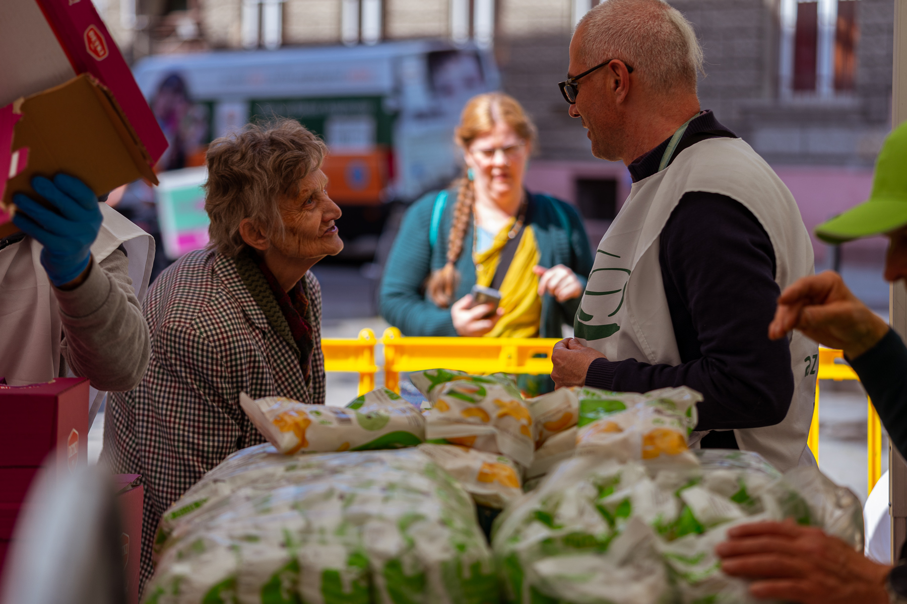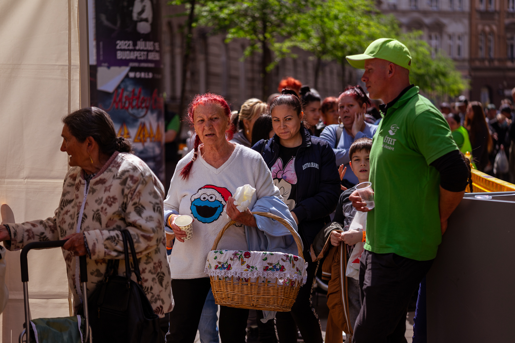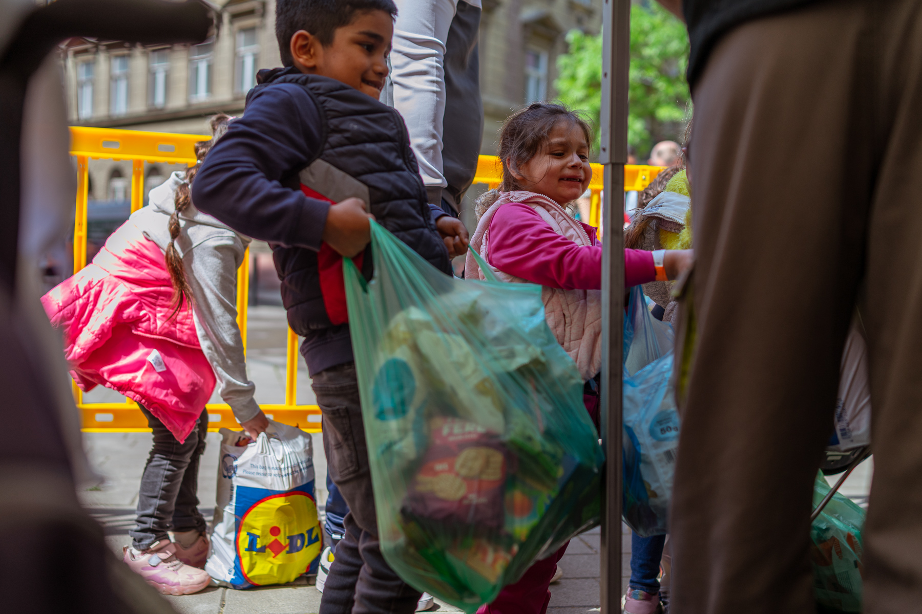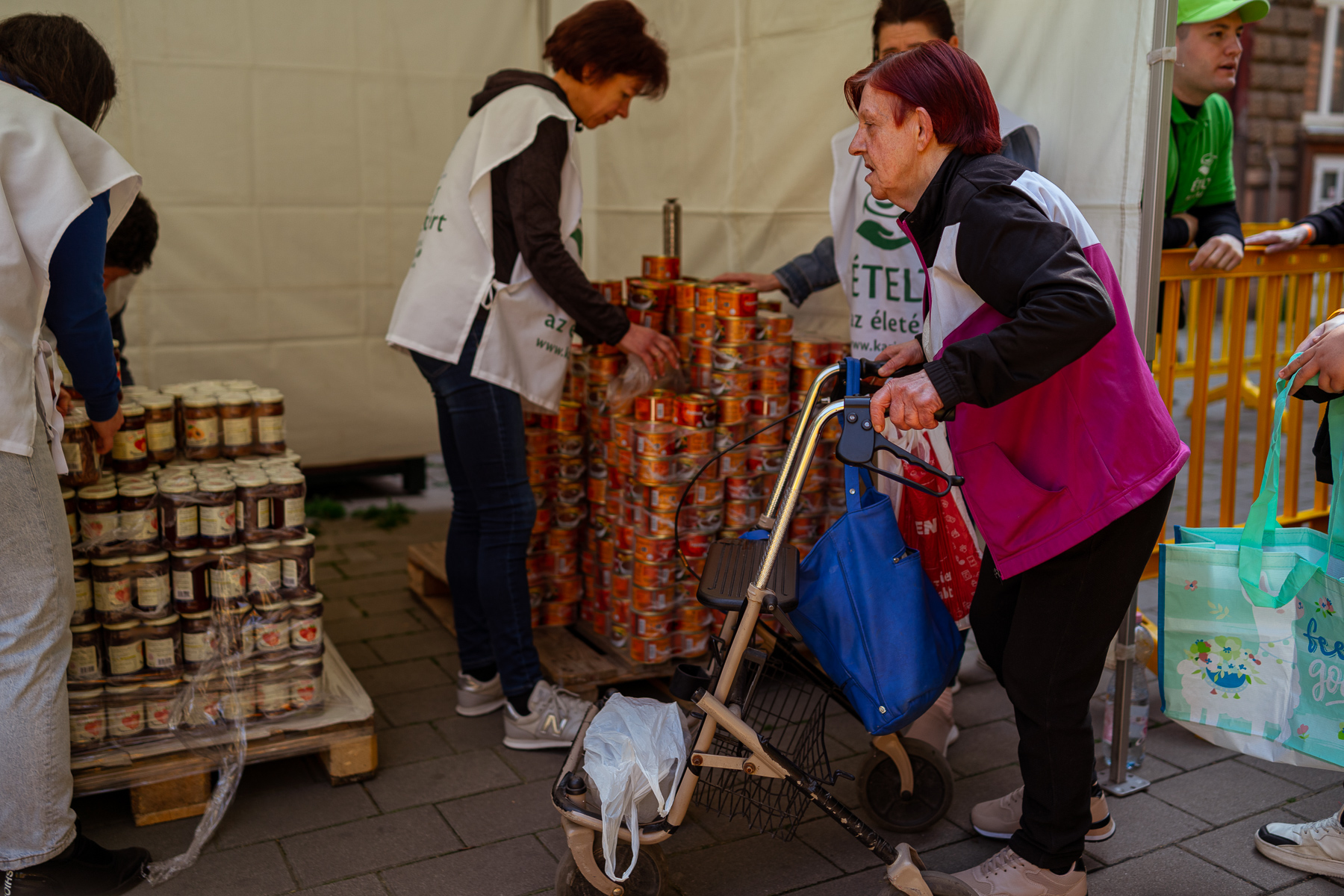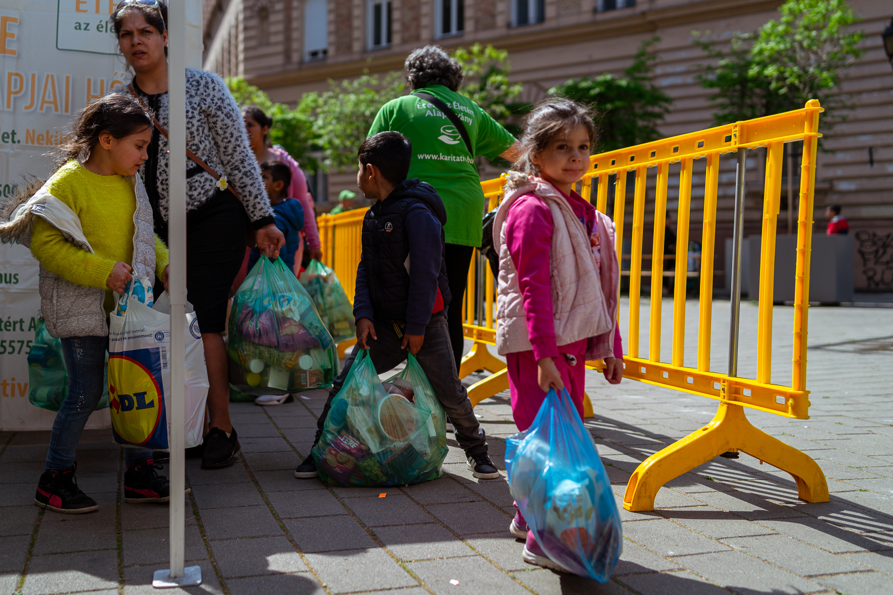 600 adag gazdag, tartós élelmiszercsomagot osztottunk ki szombaton az Almássy téren, a Föld napja alkalmából. A csomagokba a tartós élelmiszerek mellett olyan csemegék, finomságok kerültek, amelyek a nélkülöző családok asztalán ritka vagy sohasem látott vendégnek számítanak, mint az olíva bogyó, a lekvár, ketchup, gyümölcslé, vagy éppen a darált diós keverék. Az alapanyagokból a családok egészen biztosan tudnak majd főzni otthon, volt olyan édesanya, aki 3 gyermekére 1 hétig tervez főzni a csomag tartalmából.