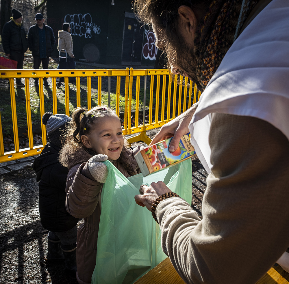 Karunamayi Devī Dāsī, az Ételt az Életért szegedi szervezője azt is elmesélte: “Valaki sírva könyörgött, hogy ez az egyetlen lehetőség, hogy ajándékot adjon a gyermekének.”