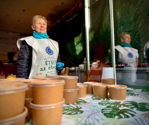A hétvégén tartottuk az egyik legnagyobb ételosztó akciónkat a Karácsonyi Szeretetlakoma során. Egerben 750 vendéget várt az Ételt az Életért csapata, és meleg ebédet, valamint egy ünnepi, gazdag ételcsomagot is kaptak a résztvevők. Egerben minden hétköznap van ételosztás, de a karácsony alkalmával, illetve más nagy ünnepek során a tartós élelmiszercsomag-ajándék a legfontosabb az érkezőknek. Ebből az egész újévi időszakban képesek otthon főzni a családok és idősek.
